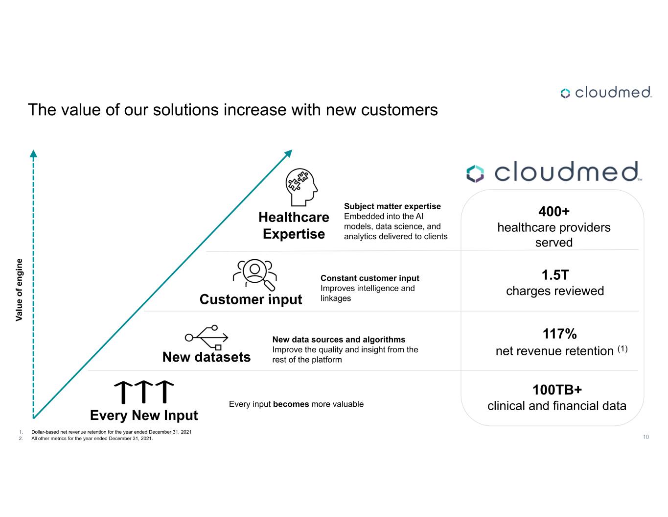 And like any platform approach, what you see, what we see is a network effect across that data set. So in any network, what you have is, the more data we see, the more customers we get, the more value we can bring back to that customer, and the more value we can bring across the ecosystem of providers. This is a key value driver to our customers. They expect a lot out of Cloudmed. It's also a reason why our competitive position is so strong. The more customers we get, the more data we collect, the stronger our solution becomes. So when we are sitting here as a company lucky enough to have partnered with 87 of the top 100 systems, which effectively is 50% of the U.S. health system market, the power of our data tech platform and automation is immense.