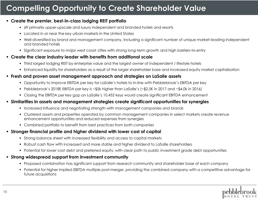 .2 Pebblebrook Hotel Trust Delivering Superior Value to LaSalle Hotel Properties Shareholders 1 August 2018