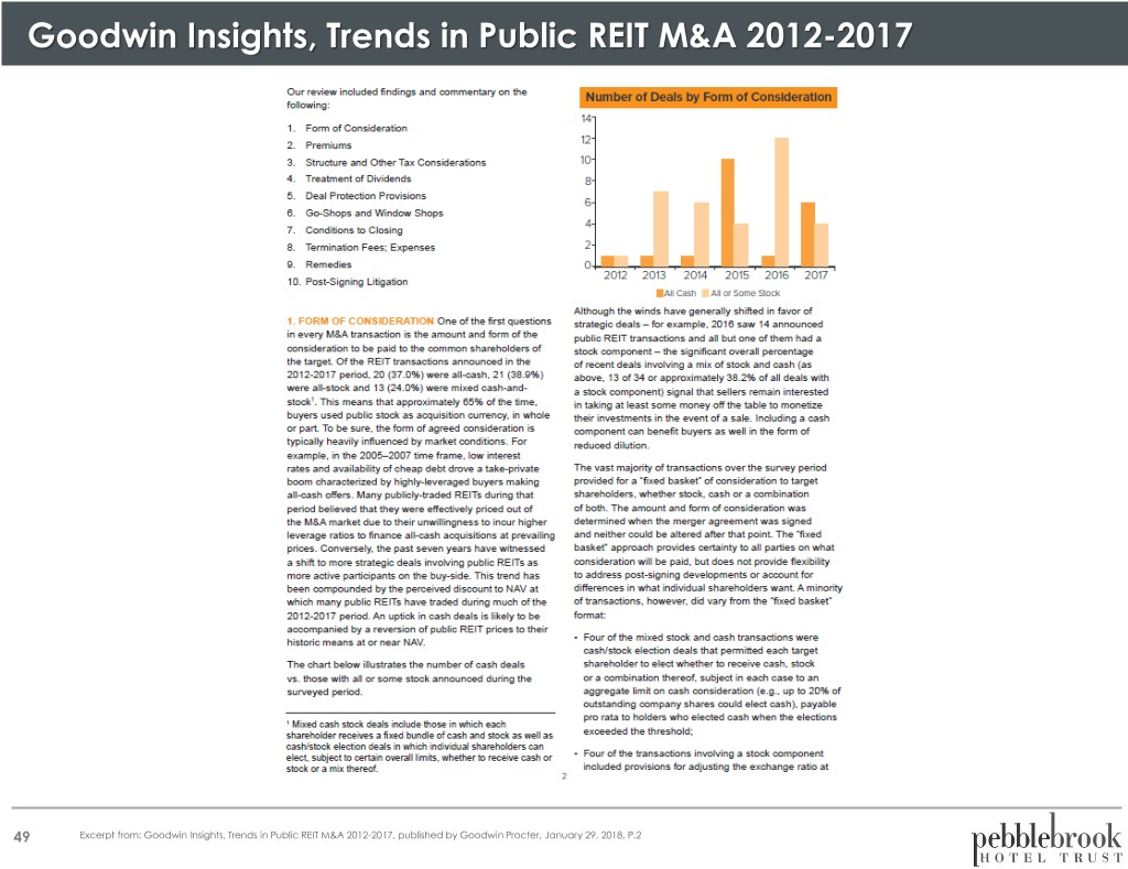Goodwin Insights, Trends in Public REIT M&A 2012-2017 49 Excerpt from: Goodwin Insights, Trends in Public REIT M&A 2012-2017, published by Goodwin Procter, January 29, 2018, P.2