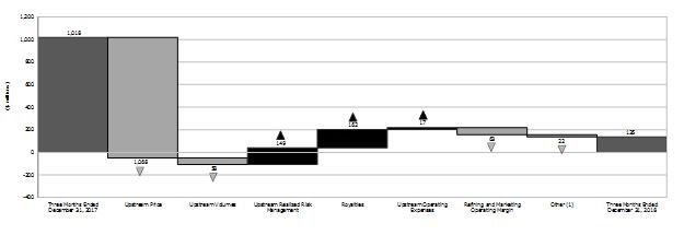 Achieved upstream operating margin from continuing operations of $1,398 million compared with $2,394 million in 2017, due in part to realized risk management losses of $1,577 million largely as a result of hedging contracts established in 2017; |