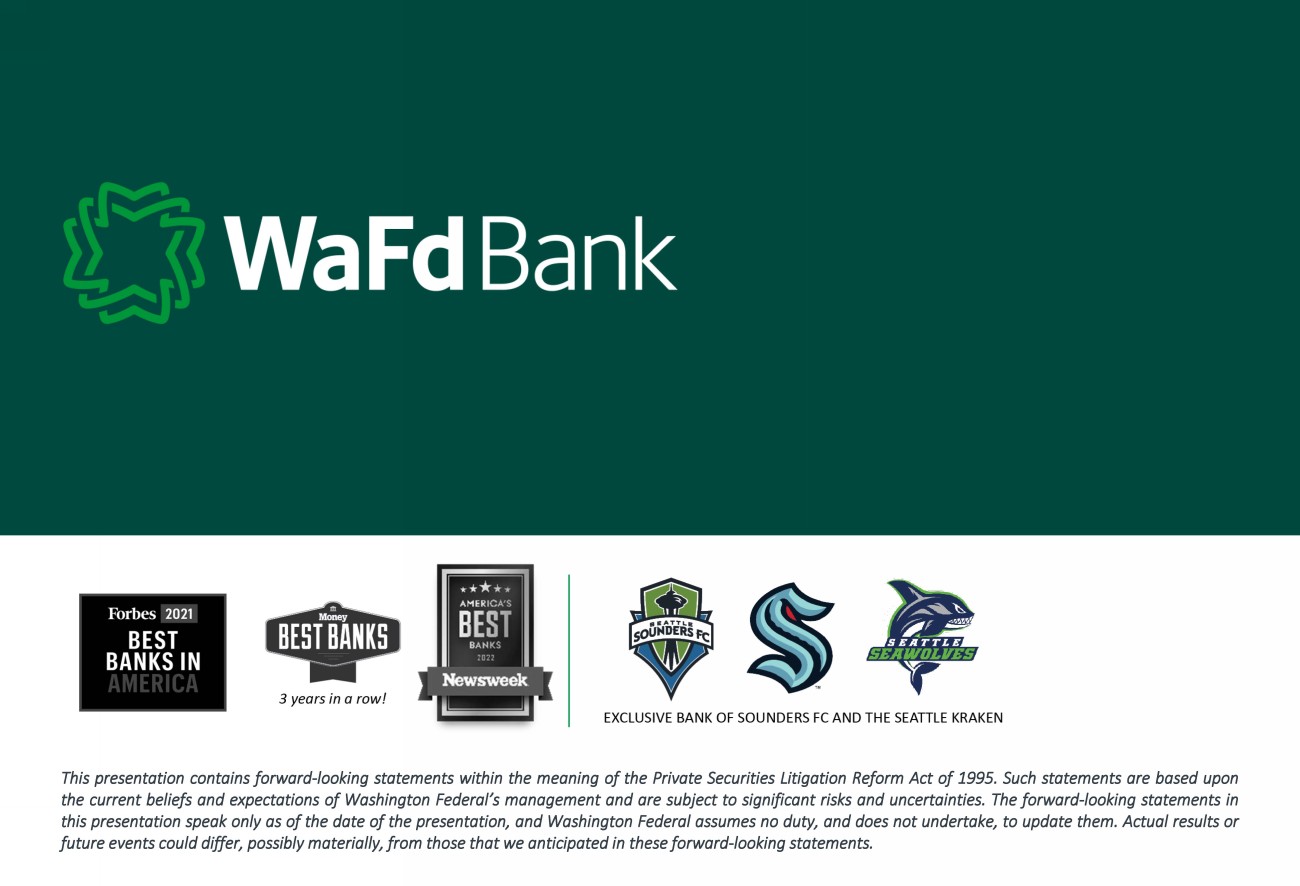 This presentation contains forward - looking statements within the meaning of the Private Securities Litigation Reform Act of 1995 . Such statements are based upon the current beliefs and expectations of Washington Federal’s management and are subject to significant risks and uncertainties . The forward - looking statements in this presentation speak only as of the date of the presentation, and Washington Federal assumes no duty, and does not undertake, to update them . Actual results or future events could differ, possibly materially, from those that we anticipated in these forward - looking statements .