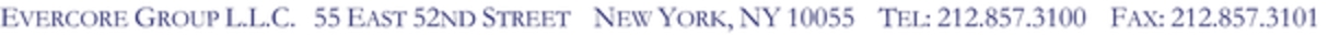 This letter, and the opinion expressed herein is addressed to, and for the information and benefit of, the Board of Directors in connection with its evaluation of the proposed Transaction. The issuance of this opinion has been approved by an Opinion Committee of Evercore Group L.L.C.
