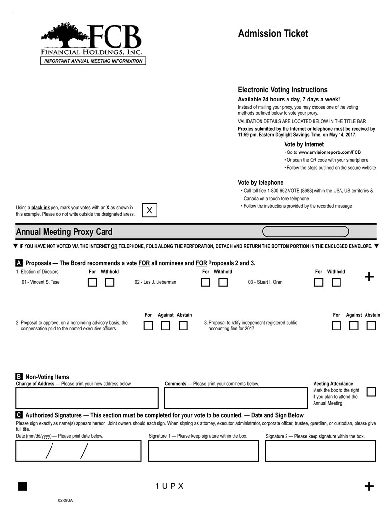 undersigned, with all the powers which the undersigned would possess if personally present, at the Annual Meeting of Stockholders of FCB Financial