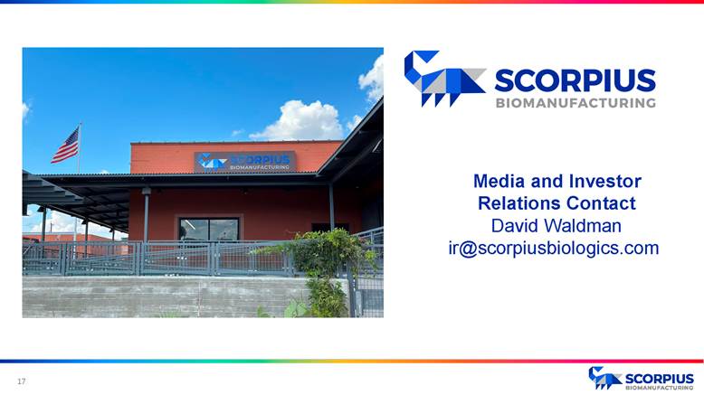 Media and Investor Relations Contact David Waldman ir@scorpiusbiologics.com 16