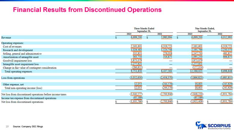 18 Source: Company SEC filings Financial Results from Discontinued Operations