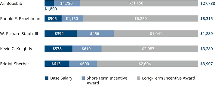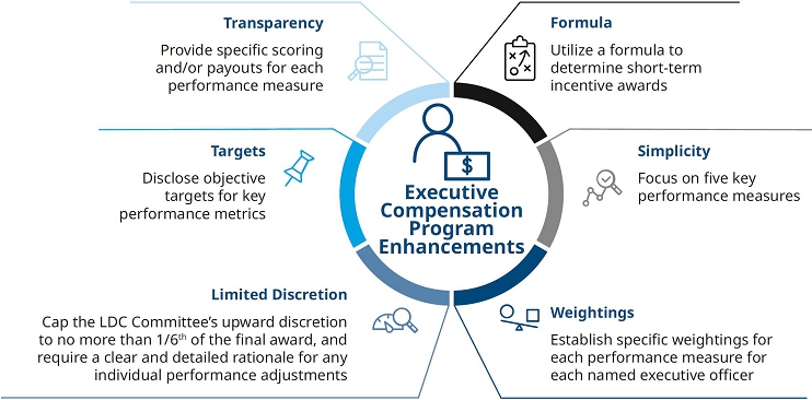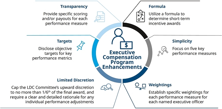 | • | We disclosed specific targets on employee engagement survey results relative to benchmark scores for our named executive officers, which impact short-term compensation payouts, tying executive compensation to our human capital management efforts, which are critical to the Company achieving its financial results |