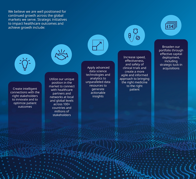 Our strategy is to utilize IQVIA Connected Intelligence™, the integration of unparalleled data, AI-powered analytics, transformative technology, extensive domain expertise, and an unmatched network of partners, to advance healthcare and improve patient outcomes by delivering actionable insights and powerful solutions to our clients and stakeholders.
