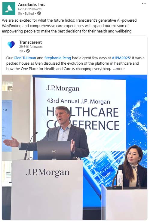 Transcarent, we’ve talked about Accolade. The team obviously knows me pretty well, I’ve been around for 9 years. Tell them about you, Glen.