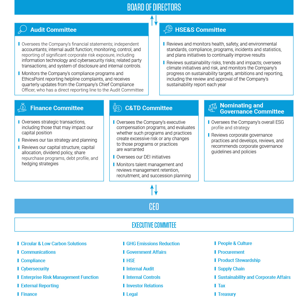 In 2022, the Board welcomed Peter Vanacker as our new CEO and executive director. As part of our leadership transition, the Company launched a comprehensive strategic review of its businesses, which resulted in, among other strategies, the creation of a new business unit for Circular and Low Carbon Solutions. To align our leadership with our evolving vision and strategy, in late 2022 the Company welcomed Yvonne van der Laan as our EVP of Circular and Low Carbon Solutions and Tracey Campbell as our EVP of Sustainability and Corporate Affairs. At the beginning of 2023, we also welcomed Trisha Conley as our new EVP of People and Culture.