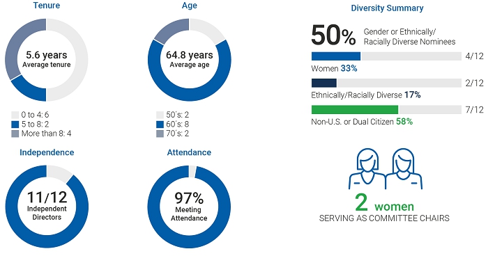 ELECTING A DIVERSE AND QUALIFIED BOARD The Board is pleased to introduce our new director nominee, Bridget Karlin, the Senior Vice President of Information Technology, Services & Operations, at Kaiser Permanente, one of the largest not-for-profit health care systems in the U.S. Ms. Karlin brings over 30 years of experience in enterprise-wide digital technology to our Board. If each of our nominees is elected, four of our twelve directors will be women and fifty percent of our Board will be gender or racially diverse.