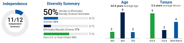 ELECTING A DIVERSE AND QUALIFIED BOARD The Board is pleased to introduce our new director nominee, Bridget Karlin, the Senior Vice President of Information Technology, Services & Operations, at Kaiser Permanente, one of the largest not-for-profit health care systems in the U.S. Ms. Karlin brings over 30 years of experience in enterprise-wide digital technology to our Board. If each of our nominees is elected, four of our twelve directors will be women and fifty percent of our Board will be gender, ethnically, or racially diverse.