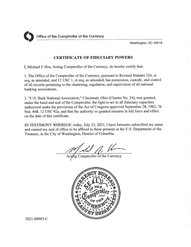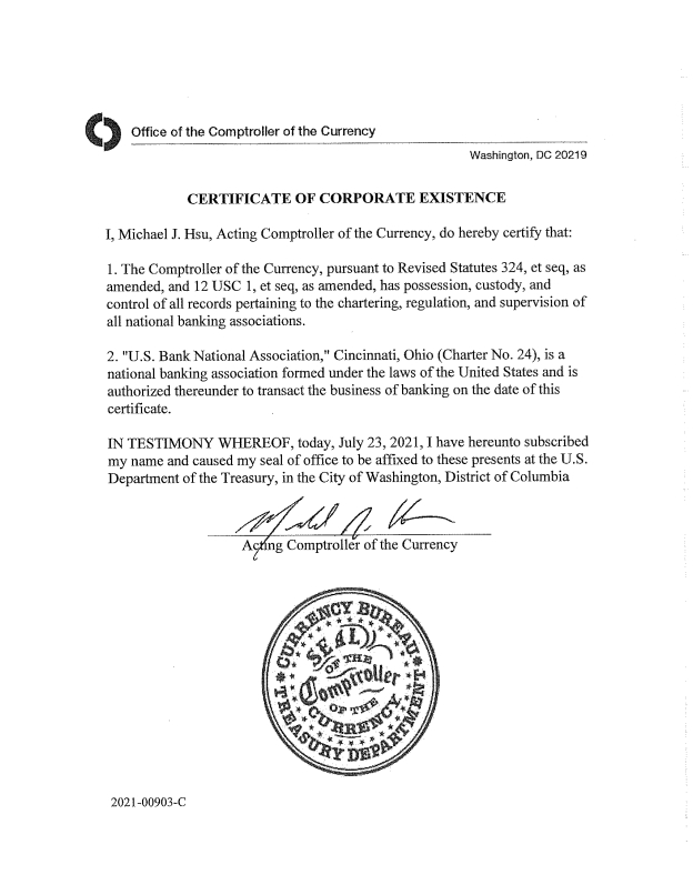 In accordance with Section 321(b) of the Trust Indenture Act of 1939, the undersigned, U.S. BANK NATIONAL ASSOCIATION hereby consents that reports of examination of the undersigned by Federal, State, Territorial or District authorities may be furnished by such authorities to the Securities and Exchange Commission upon its request therefor.