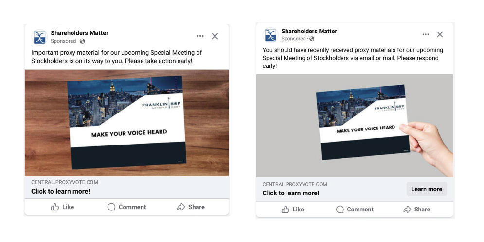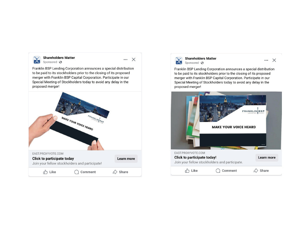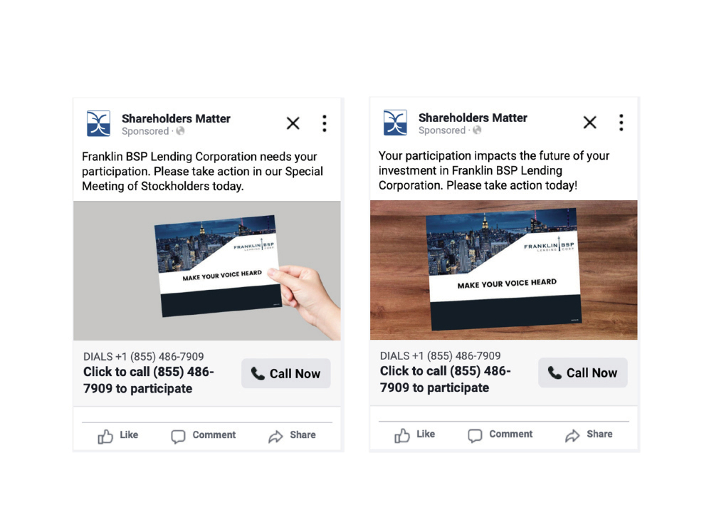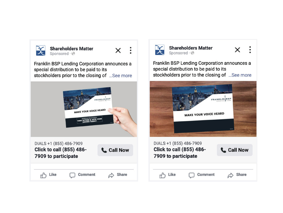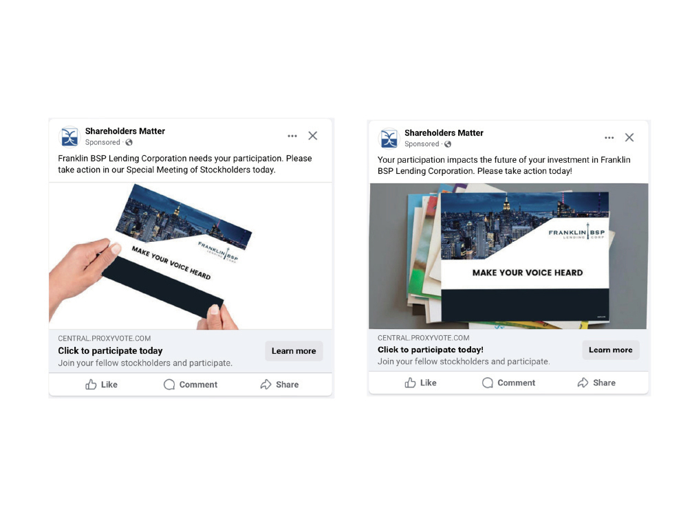 Broadridge Financial Solutions (“Broadridge”), on behalf of Franklin BSP Lending Corporation (“FBLC”), had the following advertisements posted on certain websites, including Facebook and Instagram, from time to time, commencing December 11, 2023.
