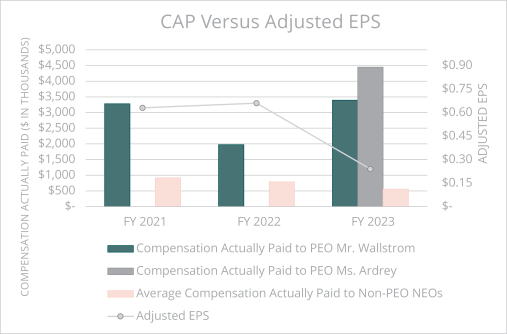 | • | The Company achieved below-threshold levels of its adjusted EPS metric for the fiscal 2023 performance year and of the prior-year performance-based restricted stock unit grants. No long-term incentive was earned for these performance grants. |