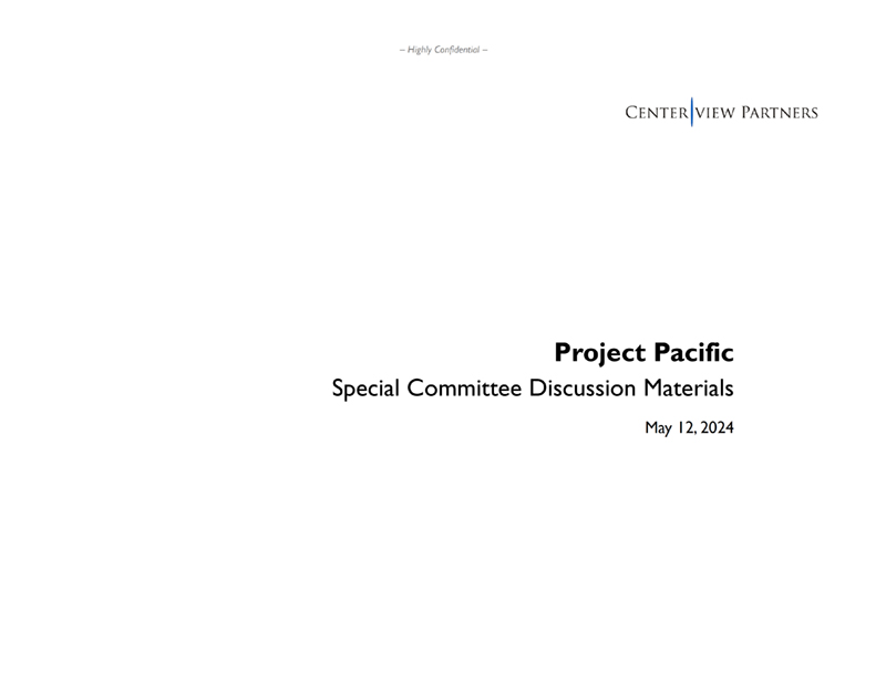 – Highly Confidential – May 12, 2024 Special Committee Discussion Materials Project Pacific