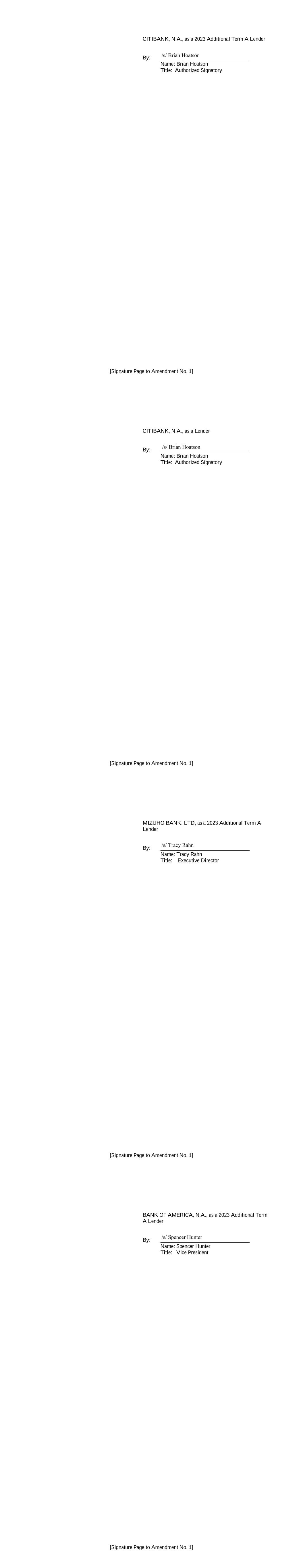 [Signature Page to Amendment No. 1] CITIBANK, N.A., as a 2023 Additional Term A Lender By: Name: Brian Hoatson Title: Authorized Signatory /s/ Brian Hoatson [Signature Page to Amendment No. 1] CITIBANK, N.A., as a Lender By: Name: Brian Hoatson Title: Authorized Signatory /s/ Brian Hoatson [Signature Page to Amendment No. 1] MIZUHO BANK, LTD, as a 2023 Additional Term A Lender By: Name: Tracy Rahn Title: Executive Director /s/ Tracy Rahn [Signature Page to Amendment No. 1] BANK OF AMERICA, N.A., as a 2023 Additional Term A Lender By: Name: Spencer Hunter Title: Vice President /s/ Spencer Hunter