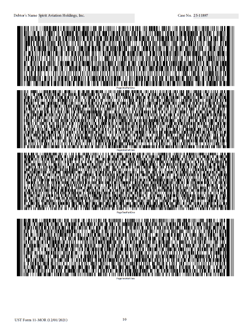 Debtor's Name Spirit Aviation Holdings, Inc. Case No. 25 - 11897 PageOnePartOne PageOnePartTwo PageTwoPartOne PageTwoPartTwo 10 UST Form 11 - MOR (12/01/2021)