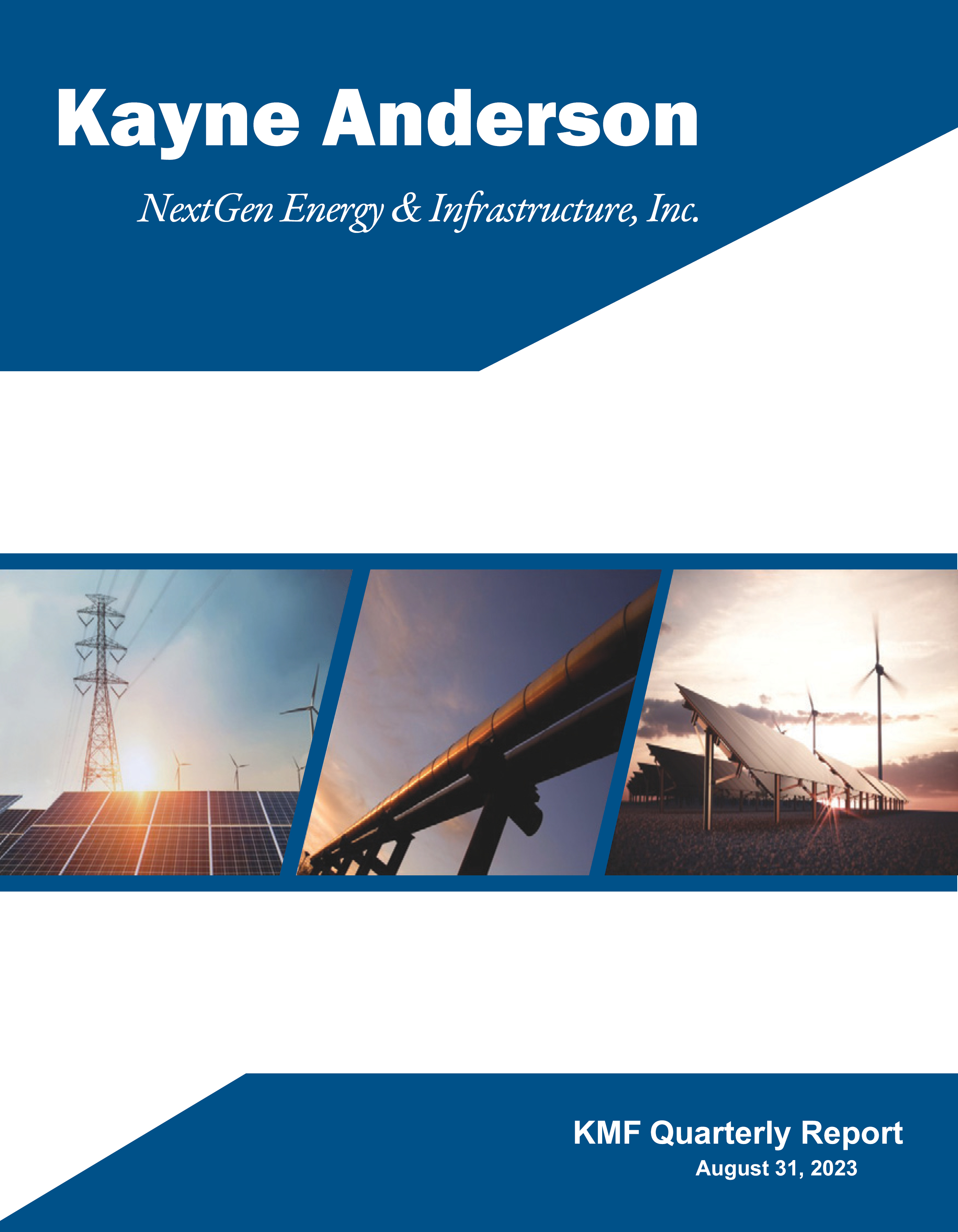 CAUTIONARY NOTE REGARDING FORWARD-LOOKING STATEMENTS: This report of Kayne Anderson NextGen Energy & Infrastructure, Inc. (the “Fund”) contains “forward-looking statements” as defined under the U.S. federal securities laws. Generally, the words “believe,” “expect,” “intend,” “estimate,” “anticipate,” “project,” “will” and similar expressions identify forward-looking statements, which generally are not historical in nature. Forward-looking statements are subject to certain risks and uncertainties that could cause actual results to materially differ from the Fund’s historical experience and its present expectations or projections indicated in any forward-looking statement. These risks include, but are not limited to, changes in economic and political conditions; regulatory and legal changes; energy industry risk; leverage risk; valuation risk; interest rate risk; tax risk; and other risks discussed in the Fund’s filings with the Securities and Exchange Commission (“SEC”). You should not place undue reliance on forward-looking statements, which speak only as of the date they are made. The Fund undertakes no obligation to publicly update or revise any forward-looking statements made herein. There is no assurance that the Fund’s investment objectives will be attained.
