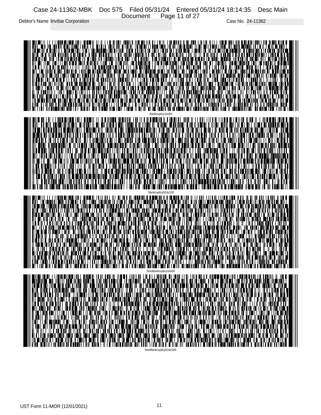 UST Form 11-MOR (12/01/2021) 11 Debtor's Name Invitae Corporation Case No. 24-11362 Bankruptcy51to100 NonBankruptcy1to50 NonBankruptcy51to100 Bankruptcy1to50 Case 24-11362-MBK Doc 575 Filed 05/31/24 Entered 05/31/24 18:14:35 Desc Main Document Page 11 of 27
