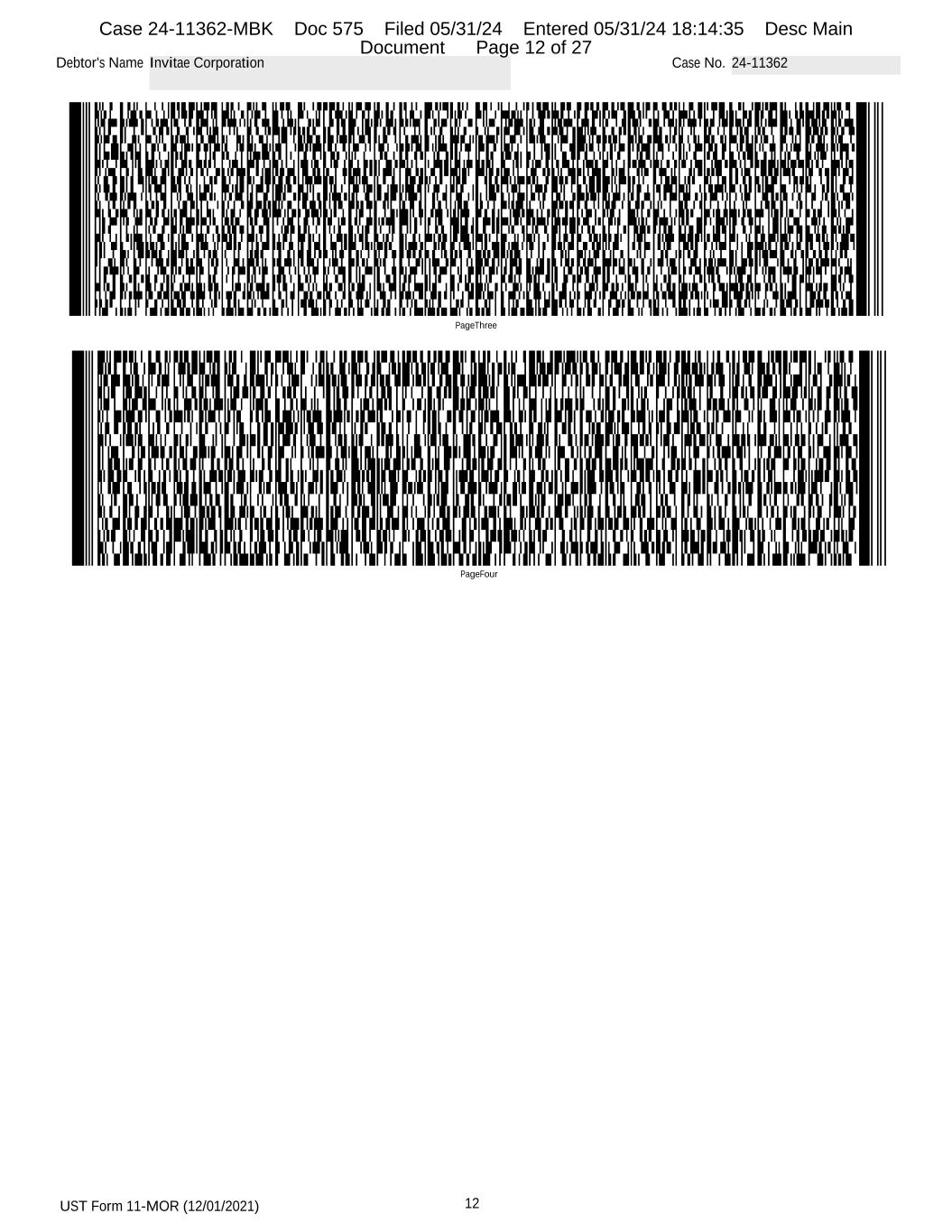UST Form 11-MOR (12/01/2021) 12 Debtor's Name Invitae Corporation Case No. 24-11362 PageFour PageThree Case 24-11362-MBK Doc 575 Filed 05/31/24 Entered 05/31/24 18:14:35 Desc Main Document Page 12 of 27