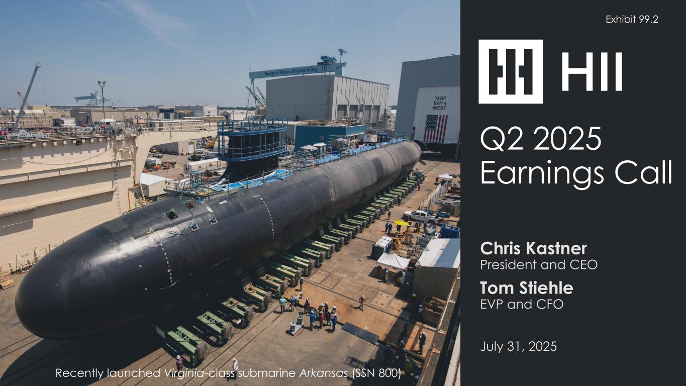 Q2 2025 Earnings Call Chris Kastner President and CEO Tom Stiehle EVP and CFO July 31, 2025 Recently launched Virginia-class submarine Arkansas (SSN 800) .2