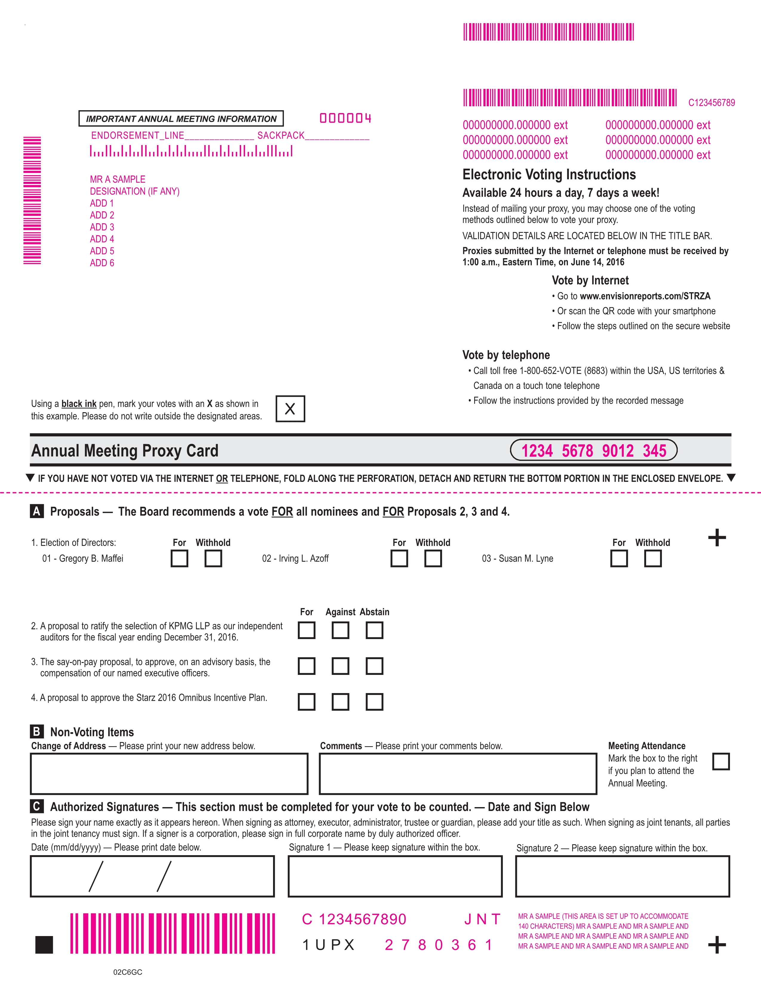4.  | A proposal to adopt the Starz 2016 Omnibus Incentive Plan (the incentive plan proposal).  |