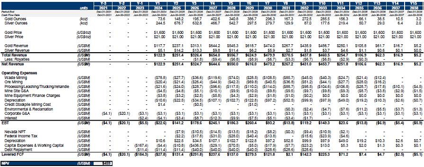 The following two tables present annual cash flow projection models for the North Bullfrog and Mother Lode properties, respectively, as presented in the technical reports prepared for each of the North Bullfrog Property and the Mother Lode Property in accordance with NI 43-101. These cash flow projection models use commodity pricing for the Base Case model as reflected in the technical reports, which were US$1,500 per ounce gold and US$18.75 per ounce silver. For purposes of their respective financial analyses, Fort Capital Partners used Street consensus commodity pricing of US$1,600 per ounce gold and US$21 per ounce silver and BMO Capital Markets used Street consensus commodity pricing with a long-term price of US$1,600 per ounce gold and US$22.50 per ounce silver.