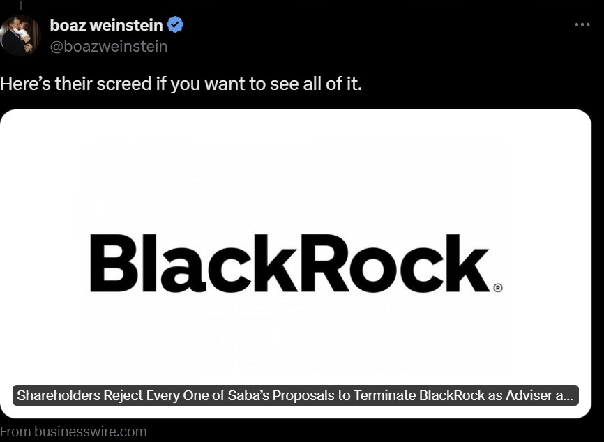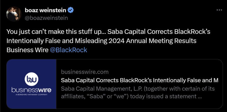Saba Capital Corrects BlackRock’s Intentionally False and Misleading 2024 Annual Meeting Results