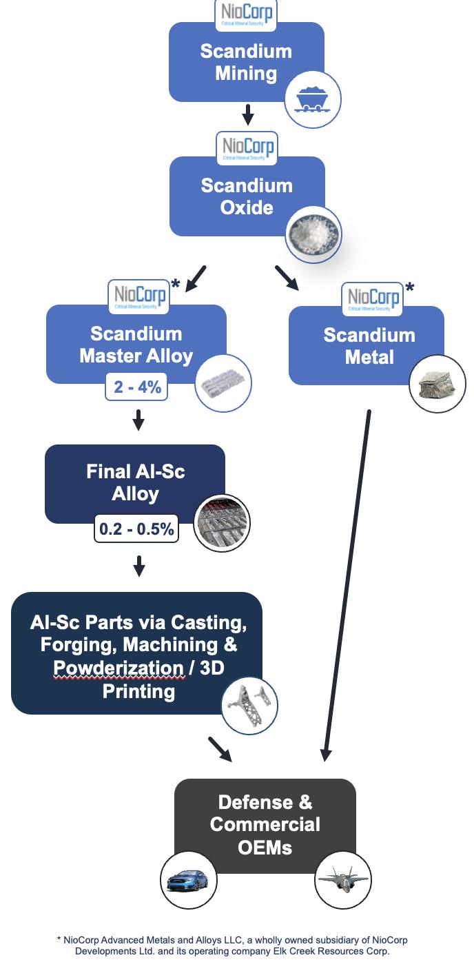 Once its Elk Creek Critical Minerals Project is Fully Financed and Operational, NioCorp Will be Positioned to Operate a Vertically Integrated Domestic Scandium Mine-to-Markets Supply Chain