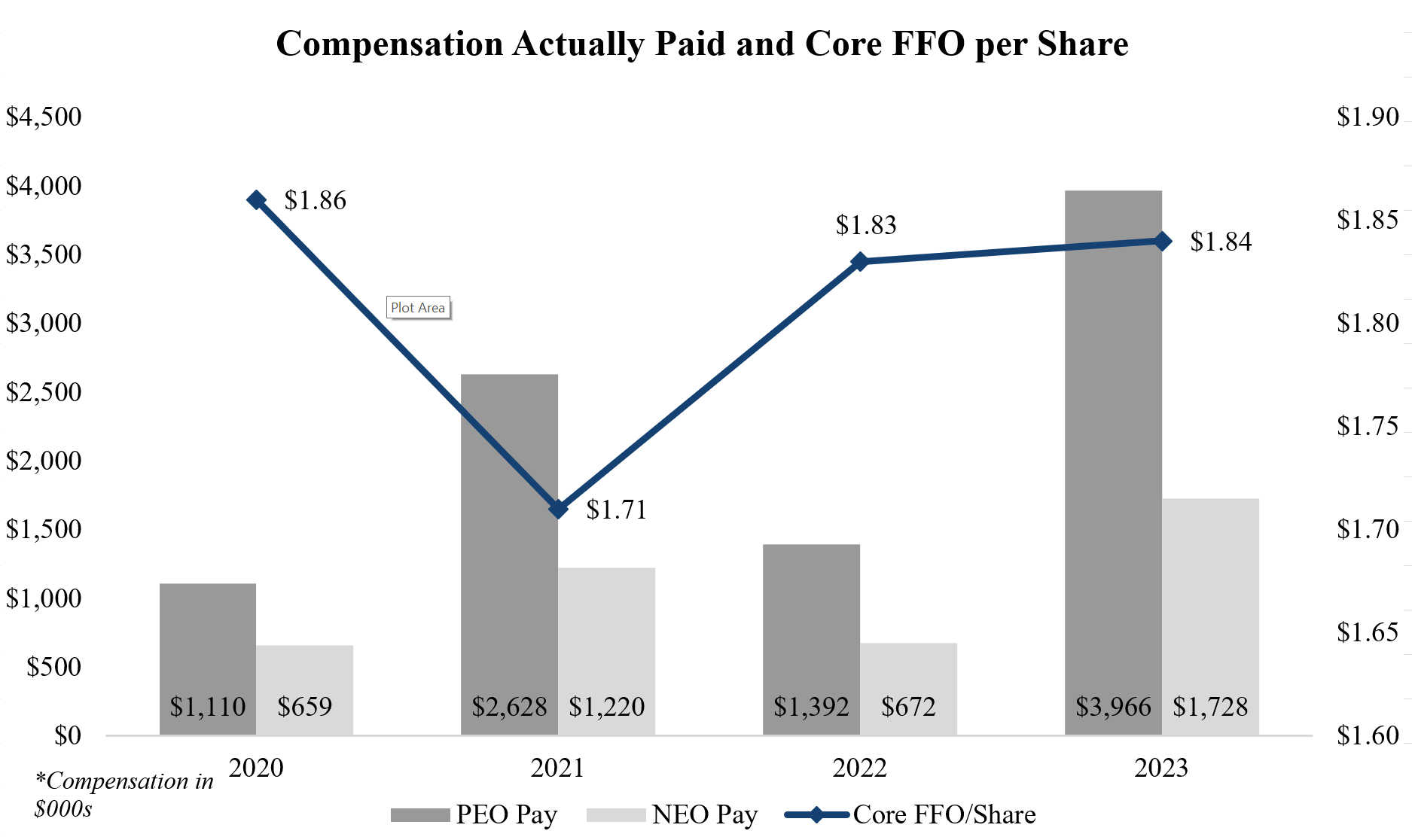 | (4) | Reflects the value of an initial investment of $100 in the MSCI US REIT Index on December 31, 2019, assuming dividends are reinvested throughout the period |