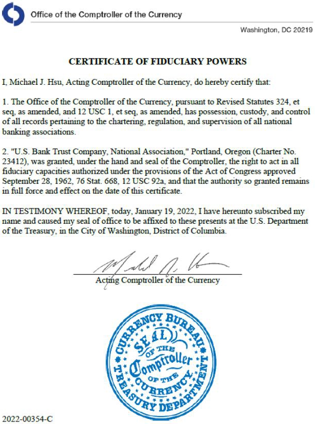 In accordance with Section 321(b) of the Trust Indenture Act of 1939, the undersigned, U.S. BANK TRUST COMPANY, NATIONAL ASSOCIATION hereby consents that reports of examination of the undersigned by Federal, State, Territorial or District authorities may be furnished by such authorities to the Securities and Exchange Commission upon its request therefor.