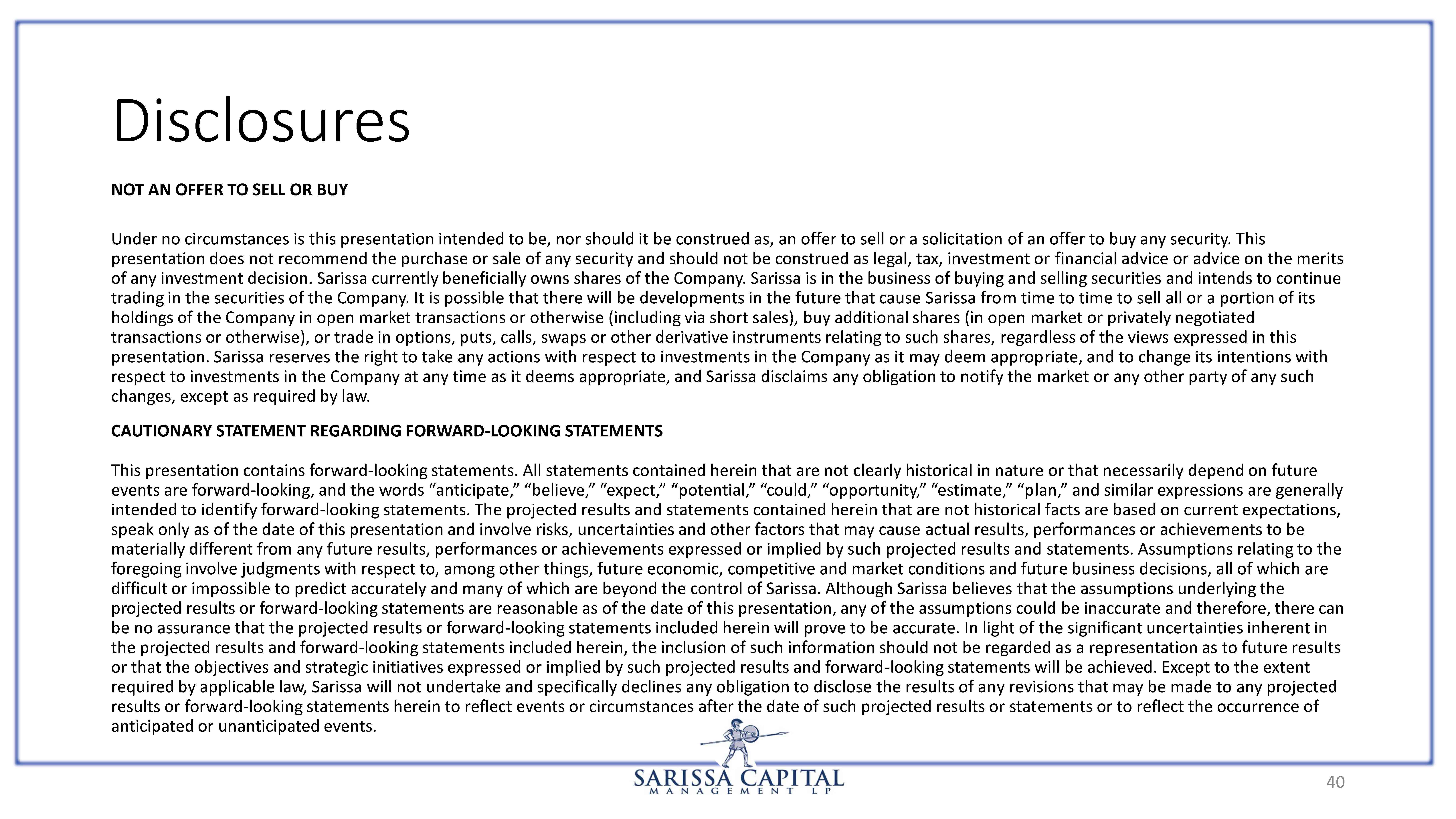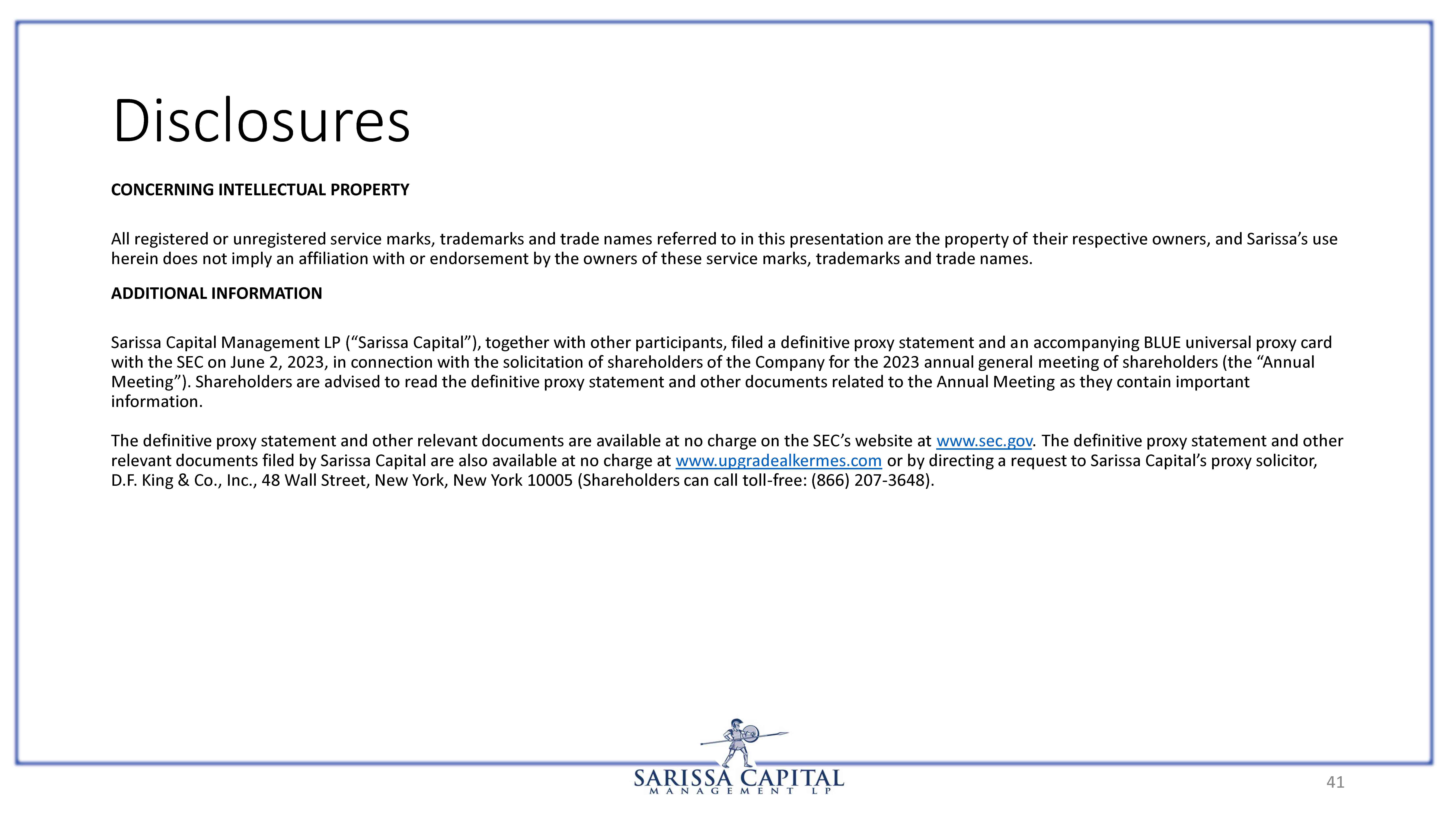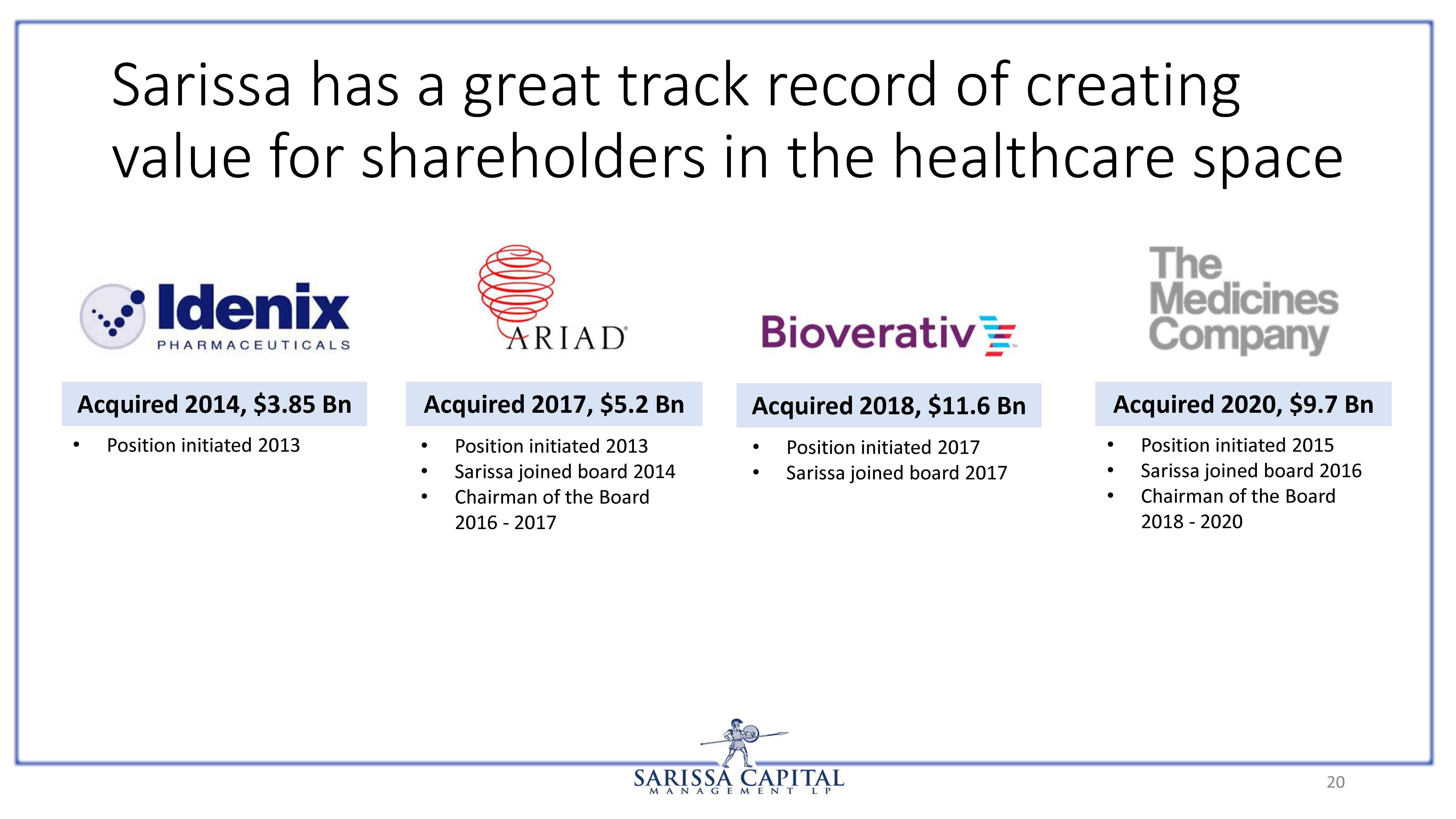 Greenwich, CT, June 15, 2023 – Sarissa Capital Management LP (“Sarissa”) today issued a presentation detailing the need for shareholder
