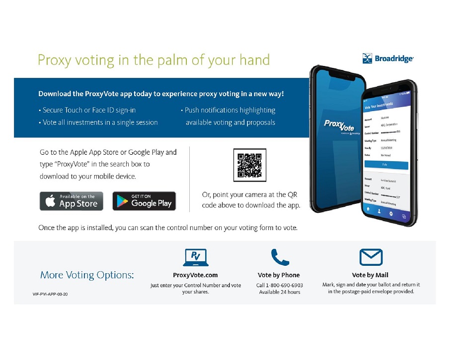 The fastest and easiest way to vote is by telephone or over the Internet. Instructions on how to vote your shares over the telephone or Internet are enclosed with this letter.