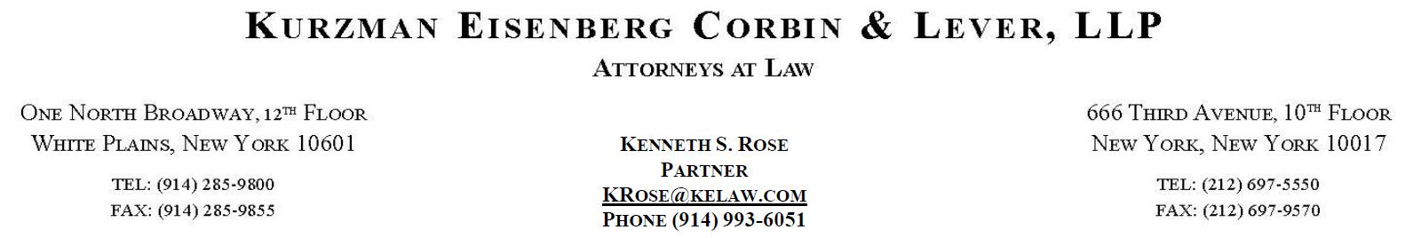 | KURZMAN EISENBERG CORBIN & LEVER, LLP | ||