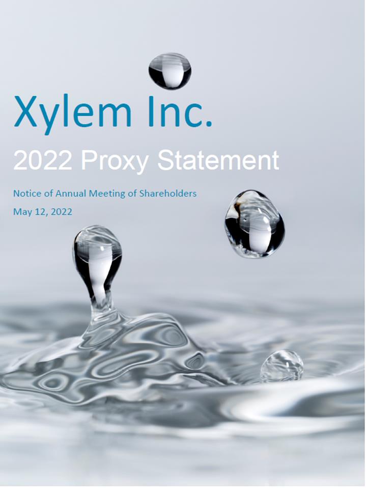 Our 2022 Proxy Statement and Annual Report on Form 10-K for the year ended December 31, 2021 will be available online at www.proxyvote.com and are currently available on our website at www.xylem.com under “Investors.” |