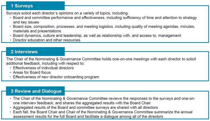 What if a director nominee fails to be elected by a majority of votes cast? Our By-laws provide that in uncontested elections, any director nominee who fails to be elected by a majority of votes cast, but who also is a director at the time, shall promptly provide a written resignation, as a holdover director, to the independent Board Chair or the Corporate Secretary. Our Nominating & Governance Committee will promptly consider the resignation and all relevant facts and circumstances concerning any vote, and the best interests of the Company and our shareholders, and will make a recommendation as to whether the Board should accept such resignation. The Board will act on the Nominating & Governance Committee’s recommendation no later than its next regularly scheduled Board meeting or within 90 days after certification of the shareholder vote, whichever is earlier, and the Board will promptly publicly disclose its decision and the reasons for its decision.