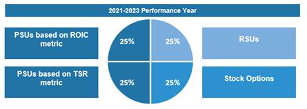A lump-sum payment for unvested equity awards that would vest according to the terms described in “Our Executive Compensation Program — Long-term Incentive Plan.” The amount reflects the market value of RSUs, PSUs (assuming 71% payout for the 2019 award and target performance for the 2020 and 2021 annual awards and the 2021 ESG awards) and in-the-money stock options based on the Company’s December 31, 2021 closing price of $119.92. |