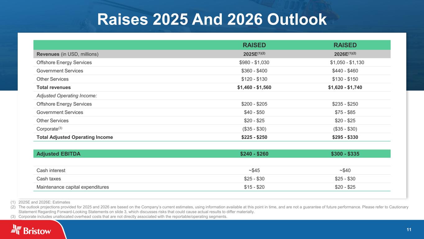 11 s (1) 2025E and 2026E: Estimates (2) The outlook projections provided for 2025 and 2026 are based on the Company’s current estimates, using information available at this point in time, and are not a guarantee of future performance. Please refer to Cautionary Statement Regarding Forward-Looking Statements on slide 3, which discusses risks that could cause actual results to differ materially. (3) Corporate includes unallocated overhead costs that are not directly associated with the reportable/operating segments. Raises 2025 And 2026 Outlook RAISED RAISED Revenues (in USD, millions) 2025E(1)(2) 2026E(1)(2) Offshore Energy Services $980 - $1,030 $1,050 - $1,130 Government Services $360 - $400 $440 - $460 Other Services $120 - $130 $130 - $150 Total revenues $1,460 - $1,560 $1,620 - $1,740 Adjusted Operating Income: Offshore Energy Services $200 - $205 $235 - $250 Government Services $40 - $50 $75 - $85 Other Services $20 - $25 $20 - $25 Corporate(3) ($35 - $30) ($35 - $30) Total Adjusted Operating Income $225 - $250 $295 - $330 Adjusted EBITDA $240 - $260 $300 - $335 Cash interest ~$45 ~$40 Cash taxes $25 - $30 $25 - $30 Maintenance capital expenditures $15 - $20 $20 - $25