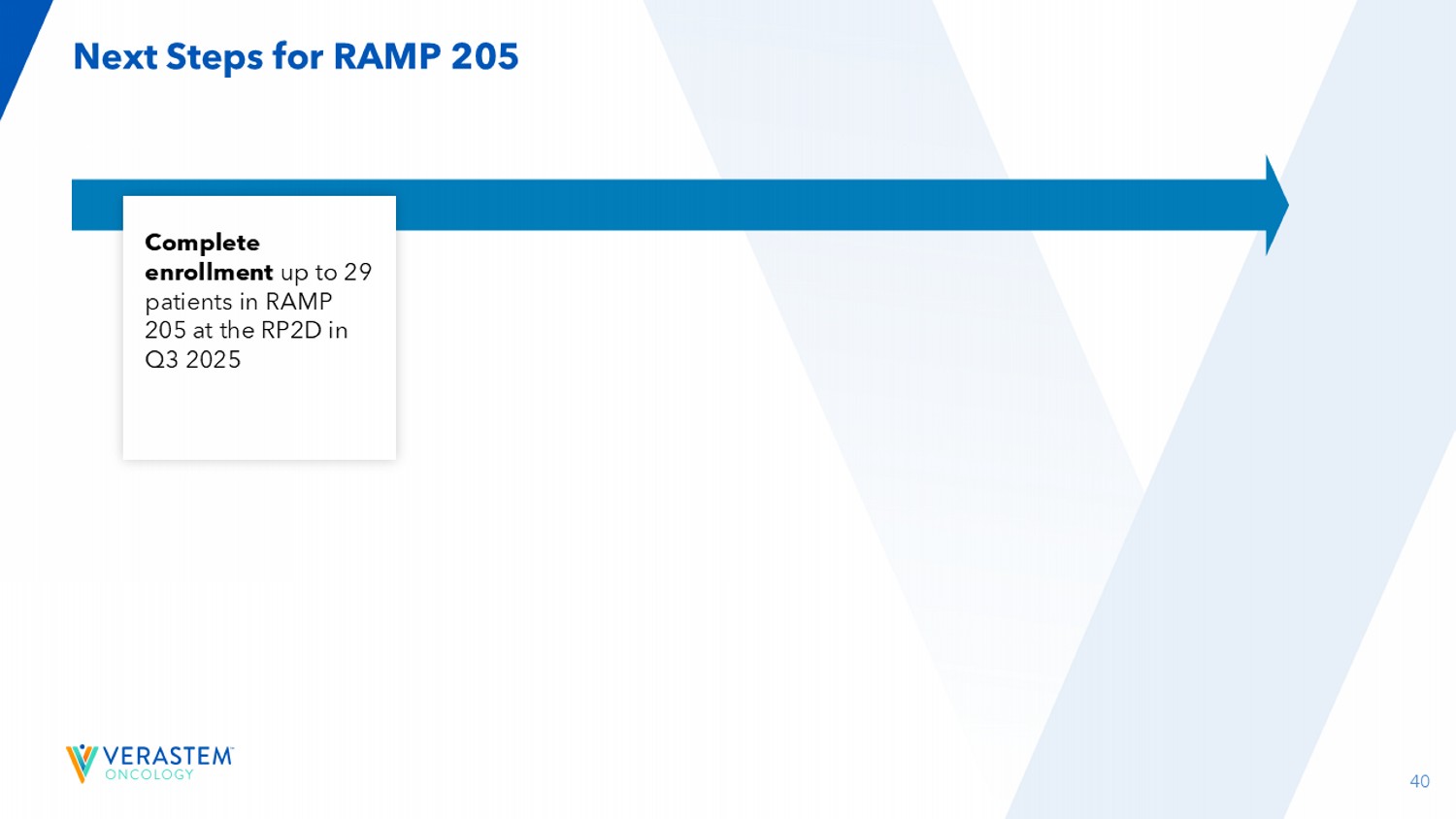 40 Next Steps for RAMP 205 Complete enrollment up to 29 patients in RAMP 205 at the RP2D in Q3 2025