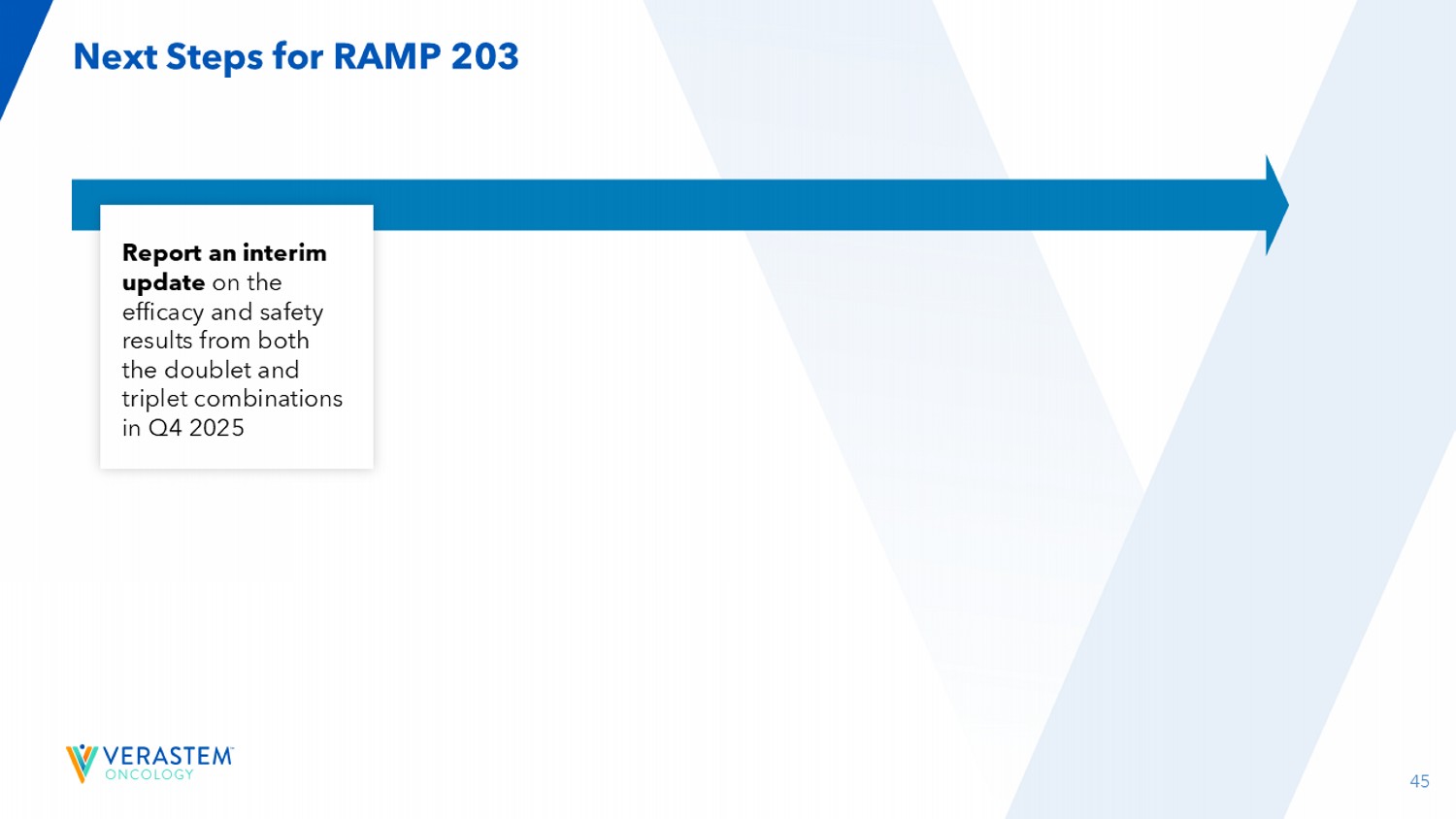 45 Next Steps for RAMP 203 Report an interim update on the efficacy and safety results from both the doublet and triplet combinations in Q4 2025