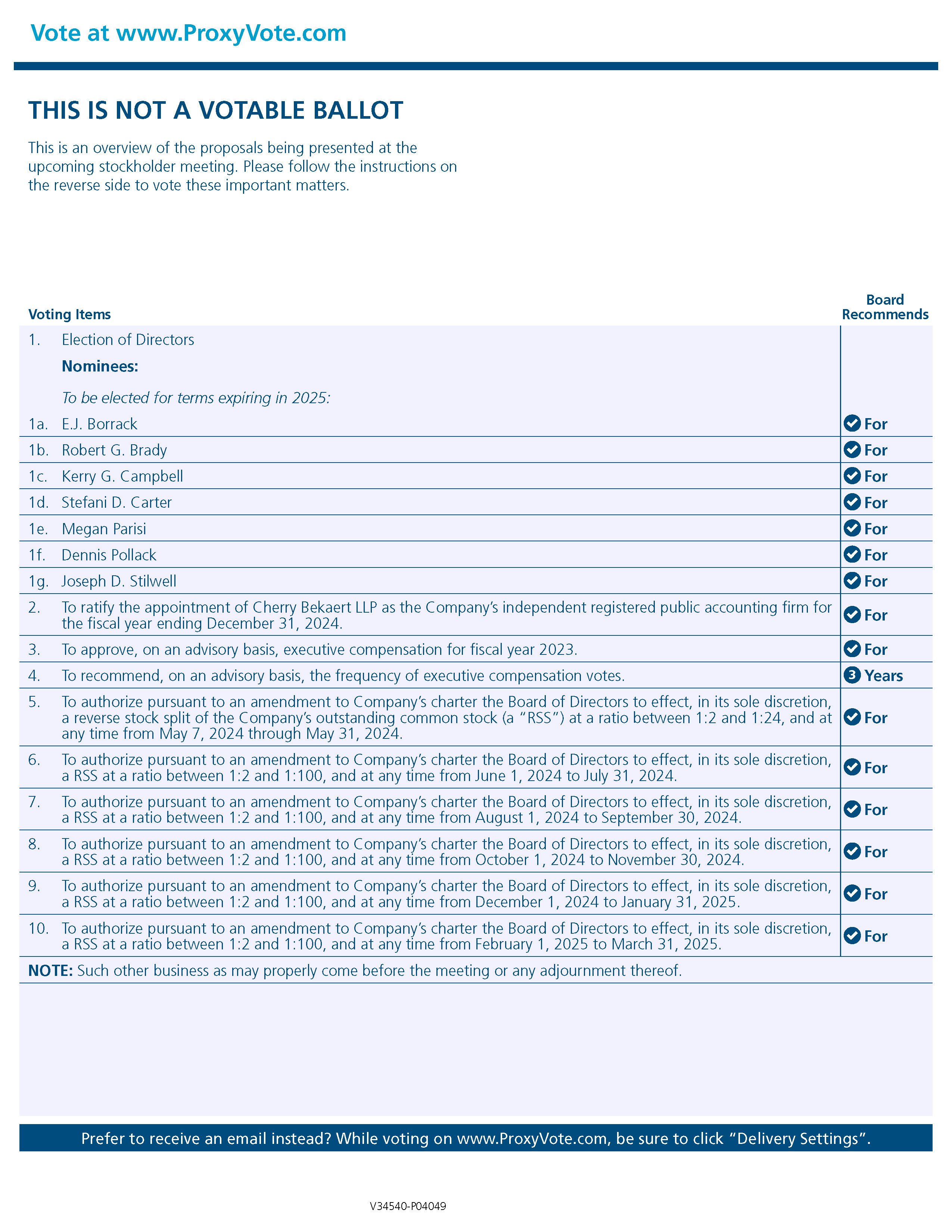 Confidential, for Use of the Commission Only (as permitted by Rule 14a-6(e)(2))