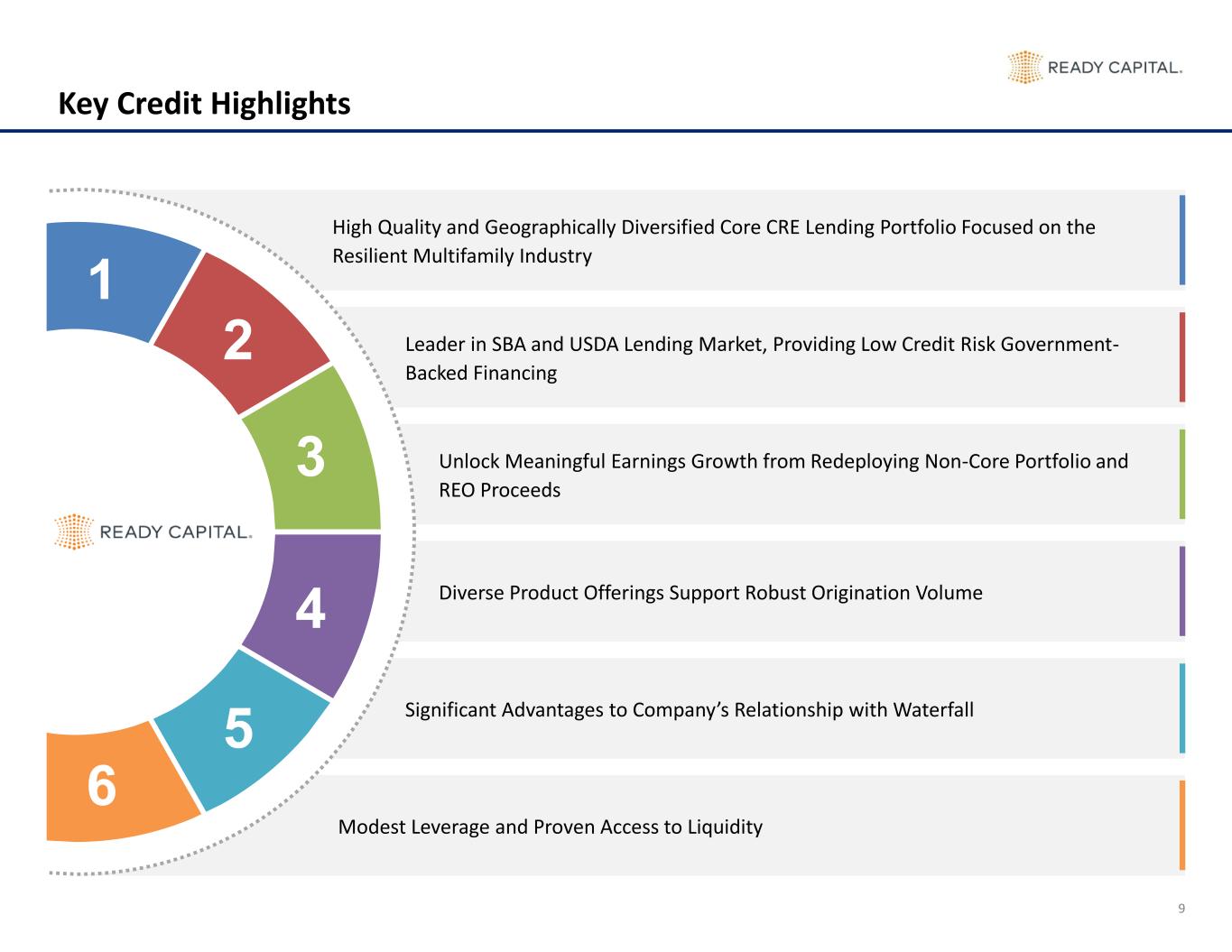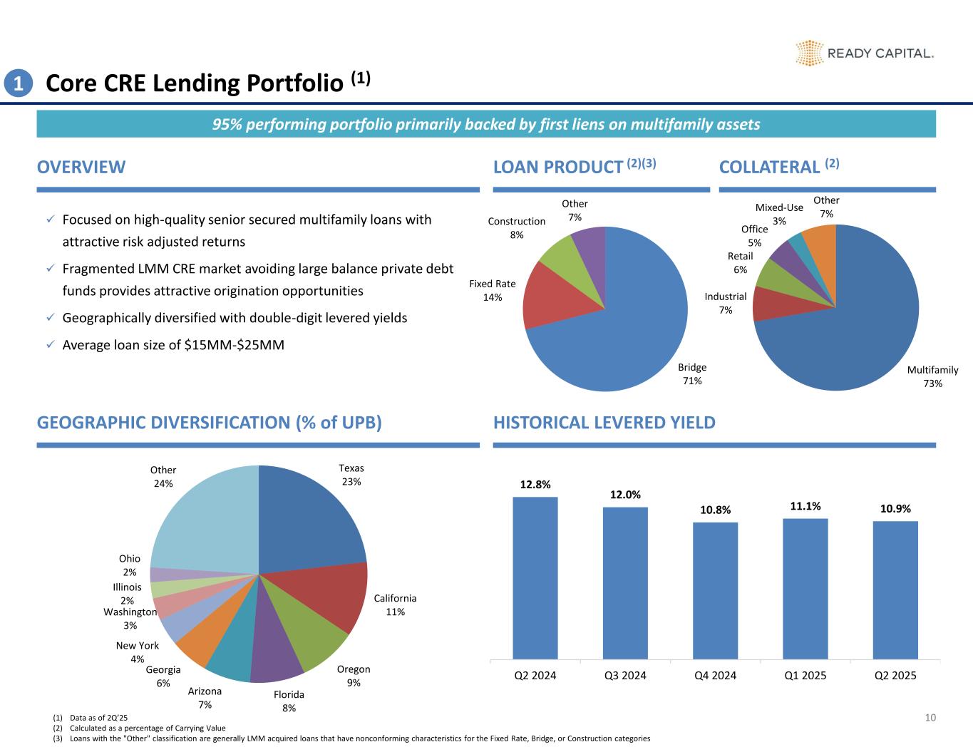 9 Key Credit Highlights High Quality and Geographically Diversified Core CRE Lending Portfolio Focused on the Resilient Multifamily Industry Leader in SBA and USDA Lending Market, Providing Low Credit Risk Government- Backed Financing Unlock Meaningful Earnings Growth from Redeploying Non-Core Portfolio and REO Proceeds Diverse Product Offerings Support Robust Origination Volume Significant Advantages to Company’s Relationship with Waterfall Modest Leverage and Proven Access to Liquidity 1 2 3 4 5 6