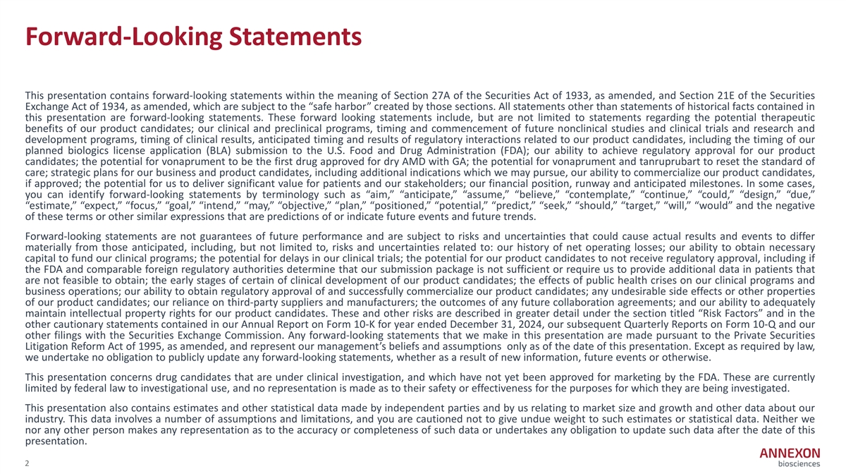 STOPPING NEUROINFLAMMATION AT ITS SOURCE TH 44 ANNUAL J.P. MORGAN HEALTHCARE CONFERENCE JANUARY 2026 Nasdaq: ANNX ©2025 Annexon, Inc. All rights reserved