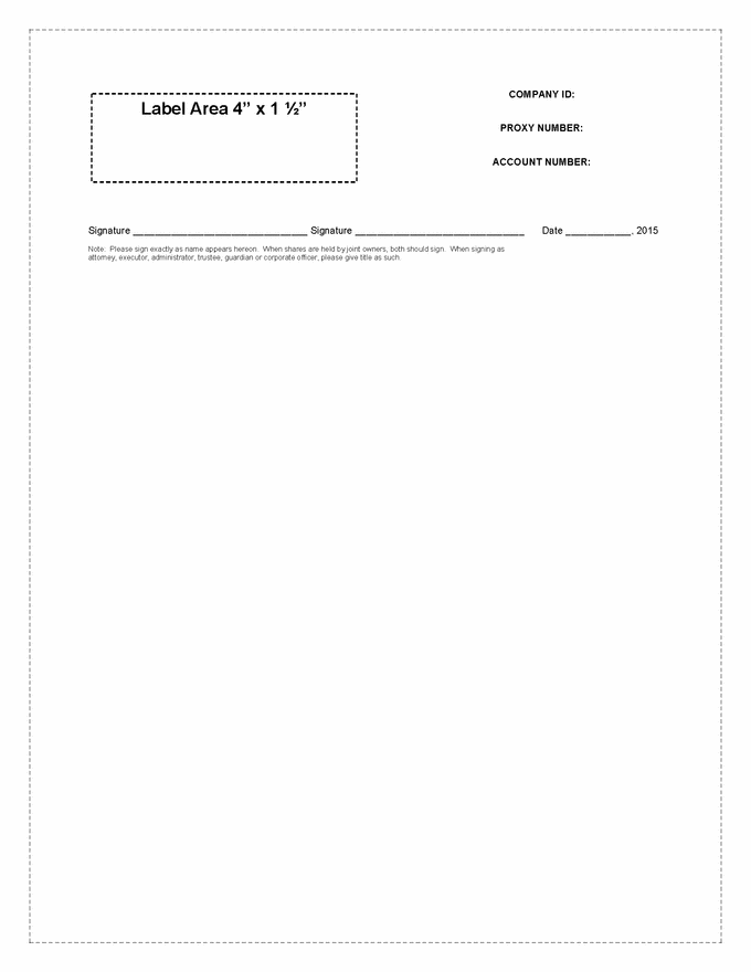 206563600 v7 COMPANY ID: PROXY NUMBER: ACCOUNT NUMBER: Signature ________________________________ Signature _______________________________ Date ____________, 2015 Note: Please sign exactly as name appears hereon. When shares are held by joint owners, both should sign. When signing as attorney, executor, administrator, trustee, guardian or corporate officer, please give title as such. Label Area 4” x 1 ½” |