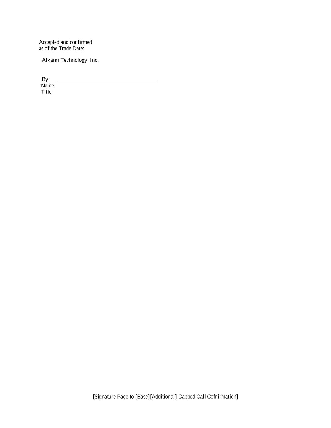 [Signature Page to [Base][Additional] Capped Call Cofnirmation] Accepted and confirmed as of the Trade Date: Alkami Technology, Inc. By: Name: Title: