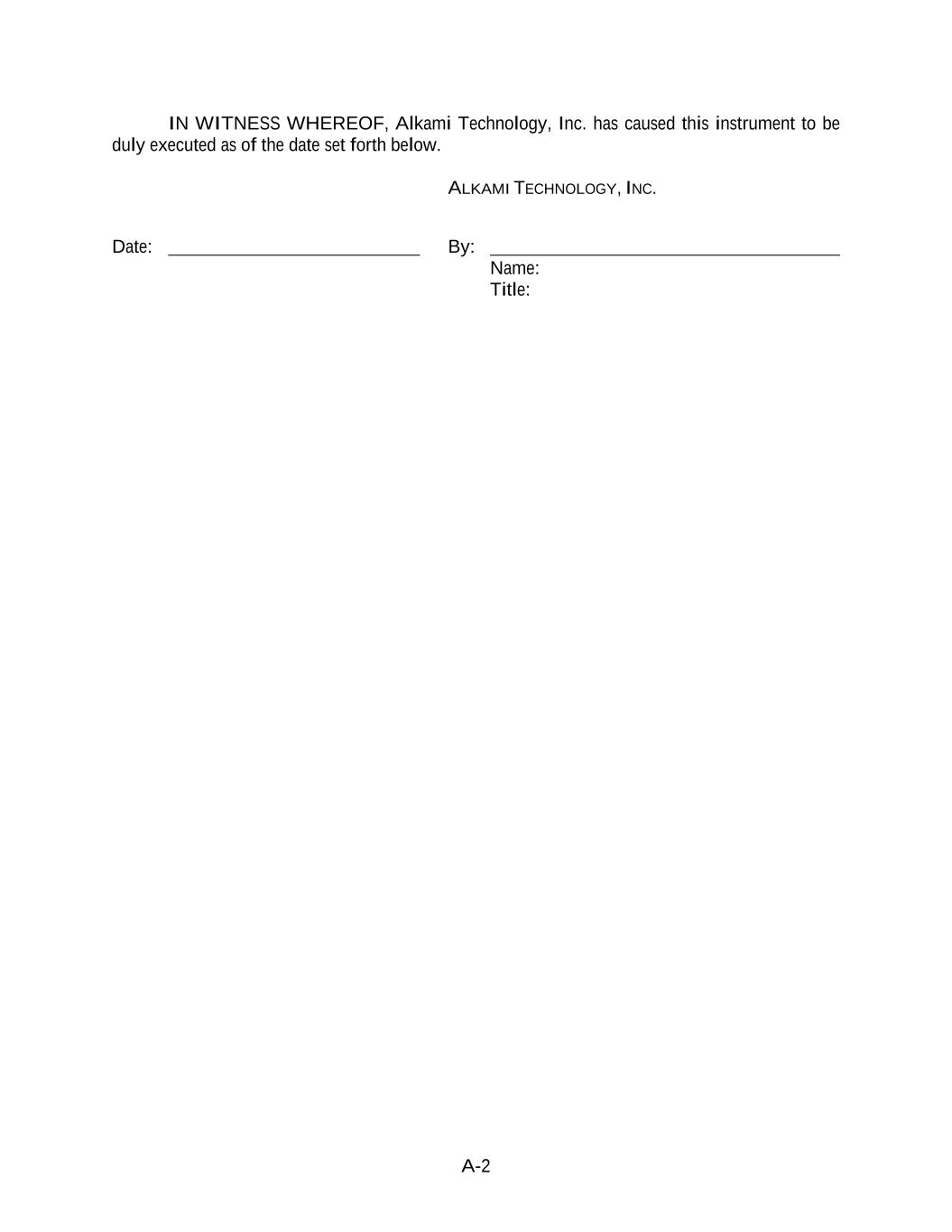 A-2 IN WITNESS WHEREOF, Alkami Technology, Inc. has caused this instrument to be duly executed as of the date set forth below. ALKAMI TECHNOLOGY, INC. Date: By: Name: Title: