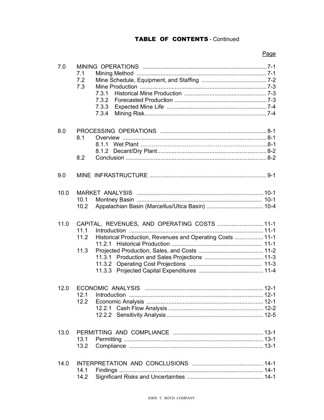 �����������������������RQWLQXHG�� 3D�H� ������������������������ ���� 0,1,1���23(5�7,216���������������������������������������������������������������������������������� ��� ���� 0LQLQ��0HWKRG������������������������������������������������������������������������������������� ��� ���� 0LQH�6FKHGXOH��(TXLSPHQW��DQG�6WDIILQ������������������������������������������������� ���� 0LQH�3URGXFWLRQ����������������������������������������������������������������������������������� ��� ������ �LVWRULFDO�0LQH�3URGXFWLRQ����������������������������������������������������������� ������ )RUHFDVWHG�3URGXFWLRQ���������������������������������������������������������������� ������ (�SHFWHG�0LQH�/LIH������������������������������������������������������������������ ��� ������ 0LQLQ��5LVN������������������������������������������������������������������������������ �4� ���� 352�(66,1���23(5�7,216����������������������������������������������������������������������� ��� ���� 2YHUYLH����������������������������������������������������������������������������������������������� ��� ��������:HW�3ODQW� ������������������������� ���������HFDQW��U\�3ODQW���������������������������������������������������������������������� ��� ���� �RQFOXVLRQ������������������������������������������������������������������������������������������� ��� ���� 0,1(��,1)5�6758�785(���������������������������������������������������������������������������� ��� ����� 0�5.(7���1�/�6,6������������������������������������������������������������������������������������ ���� ����� 0RQWQH\��DVLQ���������������������������������������������������������������������������������������� ����� �SSDODFKLDQ��DVLQ��0DUFHOOXV�8WLFD��DVLQ��������������������������������������� ���� ����� ��3,7�/���5(9(18(6����1���23(5�7,1����2676�������������������������������� ���� ����� ,QWURGXFWLRQ���������������������������������������������������������������������������������������� ���� ����� �LVWRULFDO�3URGXFWLRQ��5HYHQXHV�DQG�2SHUDWLQ���RVWV�������������������� ���� ����������LVWRULFDO�3URGXFWLRQ����������������������������������������������������������������� ����� 3URMHFWHG�3URGXFWLRQ��6DOHV��DQG��RVWV������������������������������������������� ���� ���������3URGXFWLRQ�DQG�6DOHV�3URMHFWLRQV���������������������������������������� ���� ���������2SHUDWLQ���RVW�3U