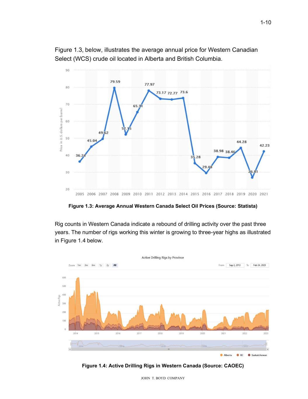 � � ����� � � � ����������������������� )LJXUH������EHOR���LOOXVWUDWHV�WKH�DYHUDJH�DQQXDO�SULFH�IRU�:HVWHUQ�&DQDGLDQ� 6HOHFW��:&6��FUXGH�RLO�ORFDWHG�LQ�$OEHUWD�DQG�%ULWLVK�&ROXPELD���� � )���UH������$�HUD�H�$���DO�:HVWHU���D�DGD�6HOHFW�2�O�3U�FHV��6R�UFH��6WDW�VWD�� � 5LJ�FRXQWV�LQ�:HVWHUQ�&DQDGD�LQGLFDWH�D�UHERXQG�RI�GULOOLQJ�DFWLYLW\�RYHU�WKH�SDVW�WKUHH� \HDUV��7KH�QXPEHU�RI�ULJV��RUNLQJ�WKLV��LQWHU�LV�JUR�LQJ�WR�WKUHH�\HDU�KLJKV�DV�LOOXVWUDWHG� LQ�)LJXUH�����EHOR����� �� � )���UH������$FW��H��U�OO����5��V����:HVWHU���D�DGD��6R�UFH���$2(���
