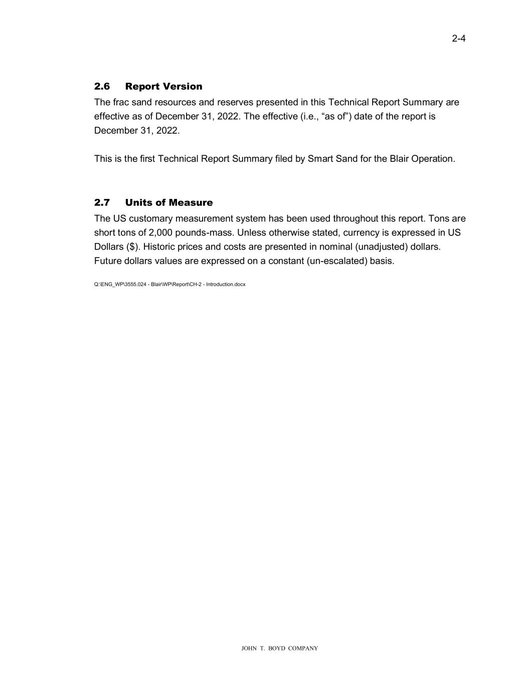 � � ���� � � � ������������������������ ���� 5�SRU����UV�RQ�� �KH�IUDF��DQG�UH�R�UFH��DQG�UH�HUYH��SUH�HQWHG�LQ�WKL���HFKQLFDO�5HSRUW�6�PPDU\�DUH� HIIHFWLYH�D��RI��HFHPEHU������������KH�HIIHFWLYH��L�H����D��RI���GDWH�RI�WKH�UHSRUW�L�� �HFHPEHU������������ � �KL��L��WKH�ILU�W��HFKQLFDO�5HSRUW�6�PPDU\�ILOHG�E\�6PDUW�6DQG�IRU�WKH��ODLU�2SHUDWLRQ���� � � ���� �Q��V�RI�0�DV�U��� �KH��6�F��WRPDU\�PHD��UHPHQW��\�WHP�KD��EHHQ���HG�WKUR��KR�W�WKL��UHSRUW���RQ��DUH� �KRUW�WRQ��RI�������SR�QG��PD�����QOH���RWKHU�L�H��WDWHG��F�UUHQF\�L��H�SUH��HG�LQ��6� �ROODU��������L�WRULF�SULFH��DQG�FR�W��DUH�SUH�HQWHG�LQ�QRPLQDO���QDGM��WHG��GROODU��� )�W�UH�GROODU��YDO�H��DUH�H�SUH��HG�RQ�D�FRQ�WDQW���Q�H�FDODWHG��ED�L���� � 4��(1�B:3�������������ODLU�:3�5HSRUW��������,QWURG�FWLRQ�GRF��