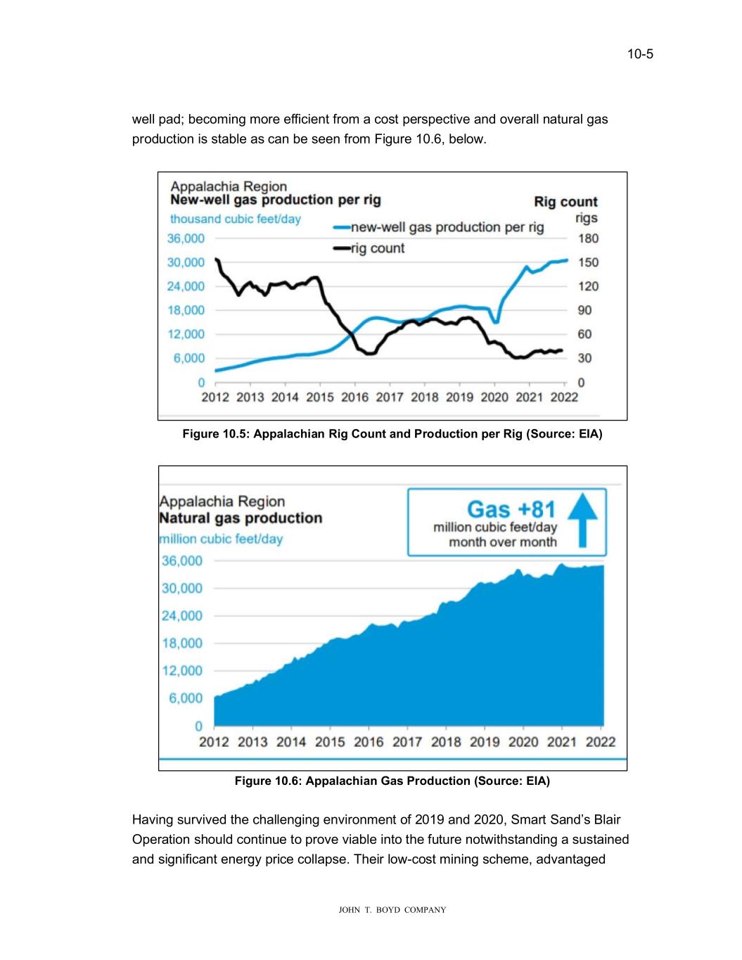 � � ����� � � � ����������������������� RSWLPL�LQJ�HDFK��HOO�SDG��EHFRPLQJ�PRUH�HIILFLHQW�IURP�D�FRVW�SHUVSHFWLYH�DQG� RYHUDOO�QDWXUDO�JDV�SURGXFWLRQ�LV�VWDEOH�DV�FDQ�EH�VHHQ�IURP�)LJXUH������EHOR���� � � )���UH������$SSDODF��D��5����R��W�D�G�3URG�FW�R��SHU�5����6R�UFH��(,$�� � � )���UH������$SSDODF��D���DV�3URG�FW�R���6R�UFH��(,$�� � �DYLQJ�VXUYLYHG�WKH�FKDOOHQJLQJ�HQYLURQPHQW�RI������DQG�������6PDUW�6DQG�V� %ODLU�2SHUDWLRQ�VKRXOG�FRQWLQXH�WR�SURYH�YLDEOH�LQWR�WKH�IXWXUH�QRW�LWKVWDQGLQJ�D� VXVWDLQHG�DQG�VLJQLILFDQW�HQHUJ\�SULFH�FROODSVH��7KHLU�OR��FRVW�PLQLQJ�VFKHPH��